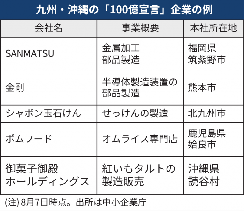売上高「100億宣言」、九州・沖縄で150社