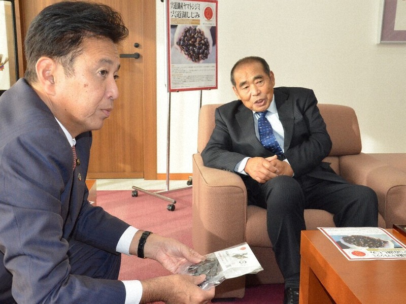 飯塚市長が「GI登録の効果は」と尋ねると、渡部組合長は「ヤマトシジミのブランドが確立できる。商品パッケージにGI登録を入れたい」と抱負。NHK連続テレビ小説「ばけばけ」の放送開始後、松江市の漁協直売所のシジミの売り上げが大幅に増えたといい、渡部組合長は「これまでシジミの加工は外注していたが、需要に追いつかないので、釜を買って自前で加工することにした」と笑顔で話した。