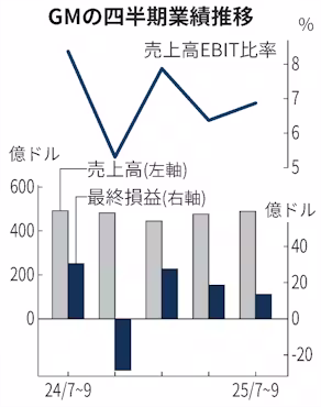 GMは日本勢やフォードのように北米で需要が広がるハイブリッド車(HV)を持たないことも弱みとなった。24年にHVに強い韓国の現代自動車と提携を発表したが、トランプ政権の関税政策で経営環境が一変し、提携戦略の策定は約1年遅れた。