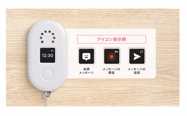 また、端末のボタンを長押しすると最大40秒の音声を録音して保護者のスマホに送る。保護者から新しい音声メッセージが届くとディスプレーにアイコンを表示する。従来モデルでは発光ダイオード(LED)の色で着信を通知していたが、ディスプレーに表示して、より円滑にコミュニケーションできるようにした。