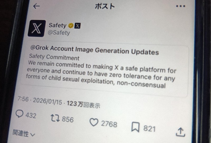 X(ツイッター)と連携した生成AI「Grok」(グロック)により実在の人物の画像が勝手に性的に加工される被害が広がっている問題で、X社は15日、「画像編集を防ぐ技術的な対策を導入した」と発表した。