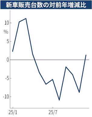 日本自動車販売協会連合会千葉県支部がまとめた2025年の千葉県内の新車販売台数(軽自動車を除く)は前年比1%減の13万2856台となった。2年連続で前年を下回った。上半期は堅調に推移したものの、下半期は日産自動車などを中心に新型車の販売が伸び悩んだ。
