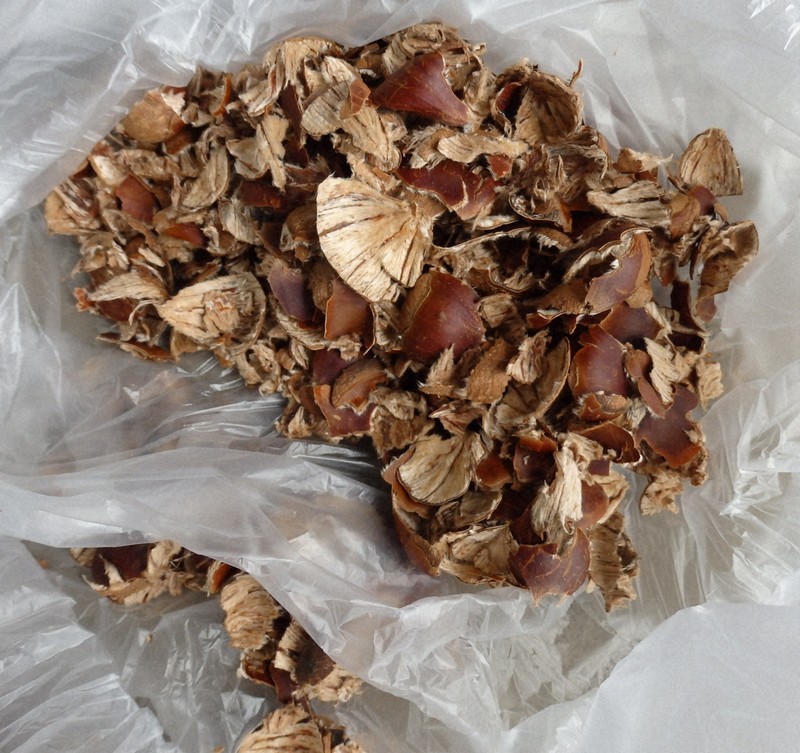 栗の鬼皮にはポリフェノールの一種「プロアントシアニジン」が含まれる。明賀さんは愛媛県特産の栗を生かし、ポリフェノールの抗酸化力を紙に生かせないかと考え、試作を始めた。