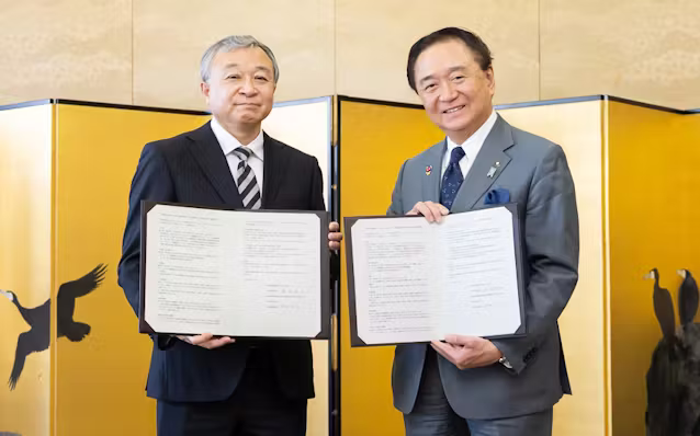 神奈川県と太陽電池製造スタートアップのPXP(相模原市)は26日、曲がる次世代太陽電池を重ねた「次世代型タンデム太陽電池」の社会実装に向けた連携協定を結んだ。耐久性や発電効率の安定性を検証し、曲面や信号機の柱、窓など将来的な用途も検討する。