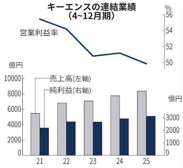 市場からは株式分割を求める声が上がる。東京証券取引所は最低投資金額を10万円程度にするよう全上場企業に求めてきたが、キーエンスの最低投資額は約588万円(29日終値ベース)と高い。25年12月には中野鉄也氏が社長に就き、経営体制が変わった。増配などの株主還元策に加えて、株式分割を通じて市場の声を聞く姿勢を示すかどうかに注目が集まる。