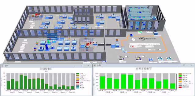 顧客は倉庫内の作業効率化のため、AGVと呼ばれる無人搬送車や棚を運ぶロボット、自動仕分け機などの導入を検討している。従来はエクセルを用いて個々の機器の効果を検証していたが、複数の機器を組み合わせて使う際の効果や、既存設備の稼働に与える影響といった倉庫全体での総合的な効果を把握しにくかった。