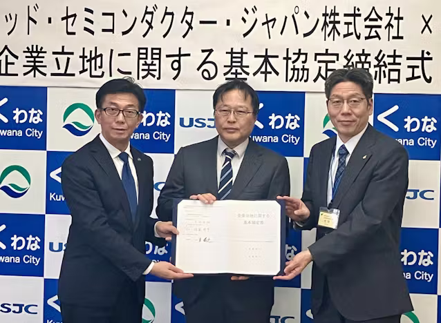 2日、桑名市や三重県と協定を結んだ。三重工場では製造装置や工場内搬送システムを増強し、2027年1月から順次操業を始める予定だ。月産能力は約4万3000枚(12インチ換算)と約3000枚分増える。さらなる追加投資も予定している。