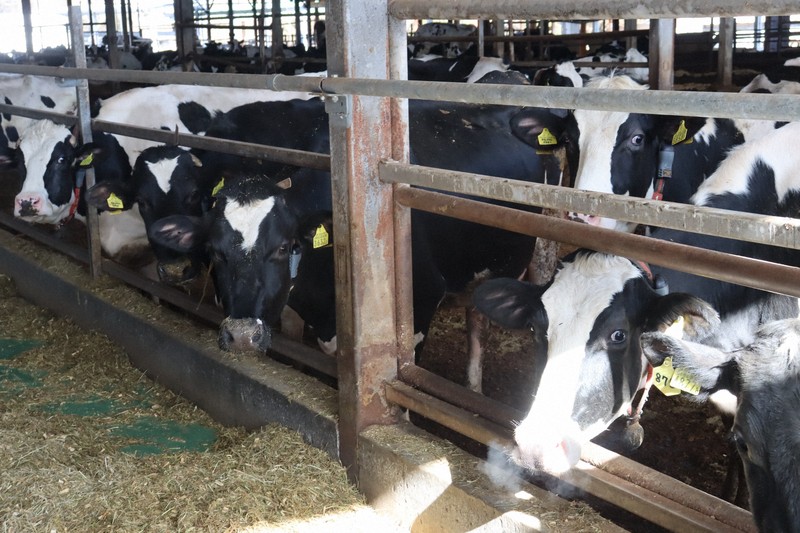 広島県中部の山間部、東広島市豊栄町で酪農を営む「トムミルクファーム」は、計約2000平方メートルの牛舎で約230頭の乳牛を飼育している。1月下旬に記者が牛舎を訪れると、社長の沖正文さん(66)が牛1頭ずつに餌を与えていた。