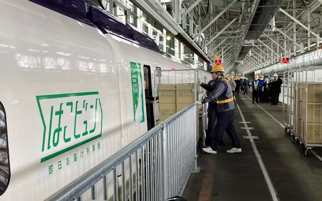 JR東日本は6日、1編成の全号車を荷物専用に改造した新幹線車両を盛岡新幹線車両センター(盛岡市)で報道陣に初公開した。列車荷物輸送サービス「はこビュン」として3月23日以降平日の毎日、同センターから東京新幹線車両センター(東京・北)までを定期運行する。