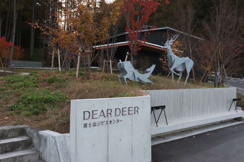 年間200万人が訪れ、富士山を一望できる山梨県富士吉田市の道の駅「富士吉田」。道路を挟んだ南側に、黒い外壁の平屋が建っている。2頭のシカのモニュメントが出迎え、カラマツの林に囲まれたテラスが広がる。施設内には、猟師が仕留めたシカやイノシシを処理・加工する多彩な設備がそろっている。