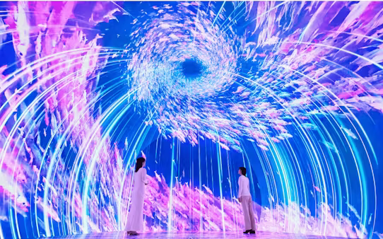 施設は高原や深海、原生林などそれぞれ異なるテーマが設定された6つのゾーンを展開。常設施設として日本最大級の「LEDイマーシブトンネル」を設置した「ゾーン2:ダイブ・トゥ・ブルー」では高精細な映像で深海へ潜っていくような感覚を体験できるという。「ゾーン3:擬態する森」では原生林を舞台に没入型体験を提供する。
