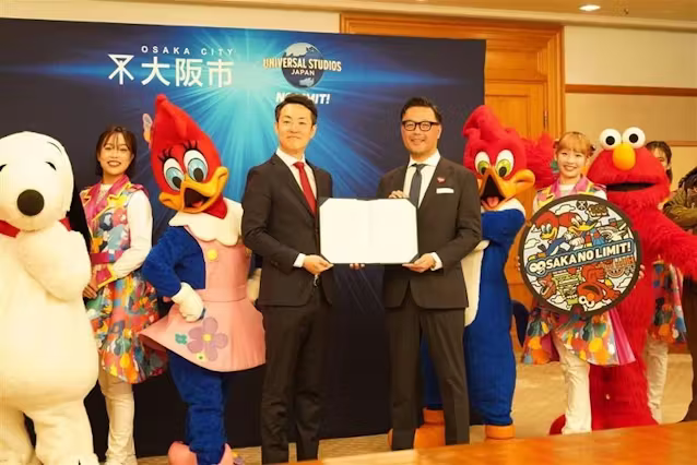 大阪市は12日、ユニバーサル・スタジオ・ジャパン(USJ)を運営するユー・エス・ジェイと包括連携協定を締結した。3月末に開業25周年を迎えるUSJと観光促進やスポーツ振興、教育などで連携を強化する。