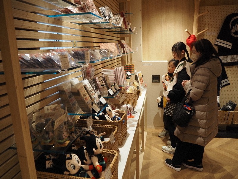 商品130~140種類を用意した。「鉄腕アトム」とコラボした「ネオアトム」のぬいぐるみといったオリジナルグッズの他、お菓子や手ぬぐい、Tシャツなどを発売している。パビリオンで展示されたアンモナイトの化石も飾っている。