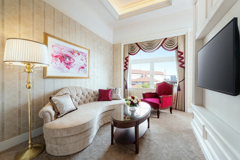 部屋は大劇場が見える「シアタービュー」のスイート(2泊で24万2000円)で、部屋着には「ReFa(リファ)」のリカバリーウェア(2着で7万7000円)が用意され、持ち帰ることができる。さらにフランスの高級スキンケアブランド「マリア ギャラン」のアメニティーセットや、滞在中の食事などもついており、フランス料理のフルコースや鉄板焼き店での特別コースなどが楽しめる。