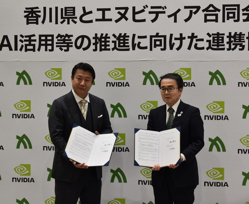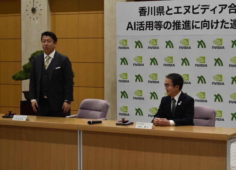 エヌビディアの大崎真孝・日本代表兼米国本社副社長と香川県の池田豊人知事は17日、AI活用推進に向けた自治体初の連携協定を結んだ。大崎代表は、県内の銀行や企業関係者らも出席した協定締結式であいさつし、「AIファクトリーで拓(ひら)く地域経済」と題した講演(約7分半)もした。それらの主な内容は次の通り。