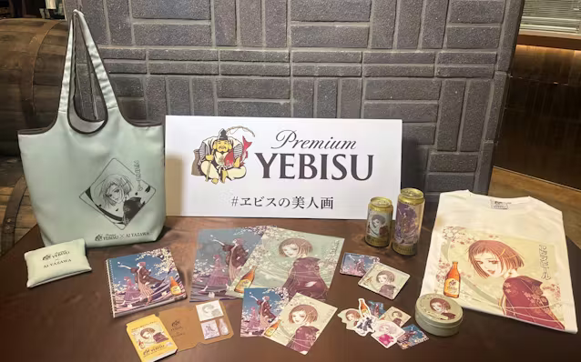 4月13日まで「門出を彩るエビスの美人画展」を開く。矢沢さんが描いた2つの美人画作品や制作背景について語ったインタビューなどを展示する。限定ビールは原料にサンショウや花椒(ホアジャオ)などを使い、刺激のある味わいとした。価格は1杯1500円。画展の限定グッズも販売する。