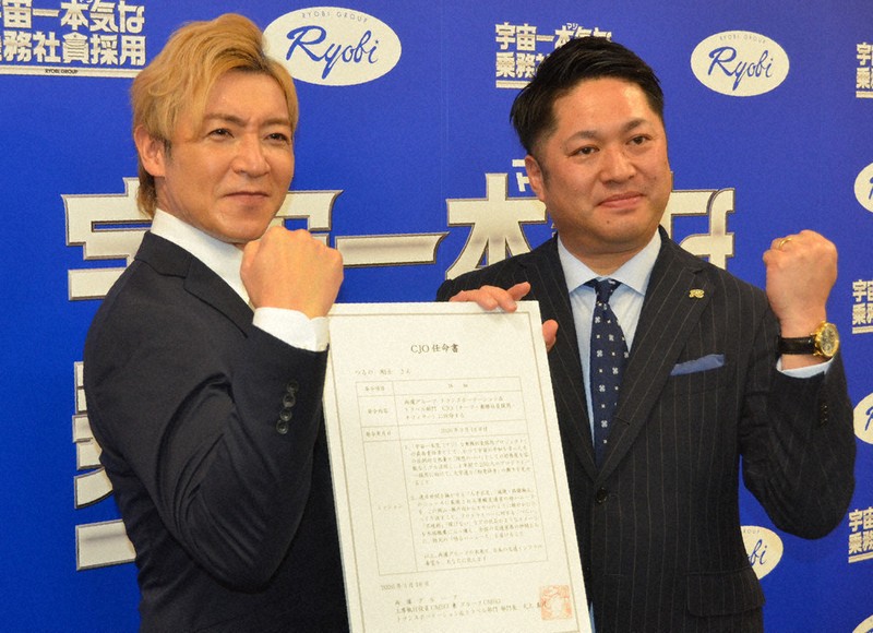 5人の父親で、過去に「ウルトラマンダイナ」を演じたこともあるつるのさんは18日の記者会見後、大上部門長から「かつて宇宙の平和を守った圧倒的な熱量と理想のパパとしての好感度をフル活用し、250人採用に向けて粉骨砕身の働きを見せること」などのミッションが書かれた辞令を受け取った。