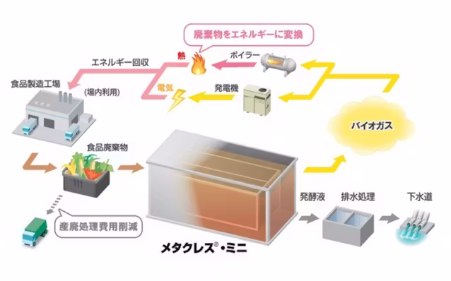 鹿島は1990年代から高温固定床式のメタン発酵装置「メタクレス」を開発・展開している。メタクレスは多量のバイオマス(日処理3〜100トン)を排出する事業者・自治体向け装置で15件以上の導入実績がある。