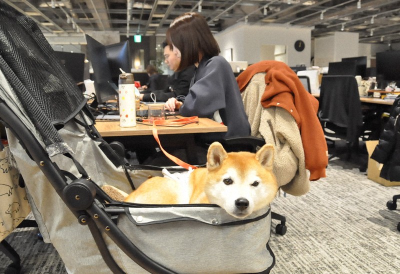 ペットを飼っていない社員も2、3割いるが「犬がいるとコミュニケーションが取りやすい」と好意的に受け止めているという。