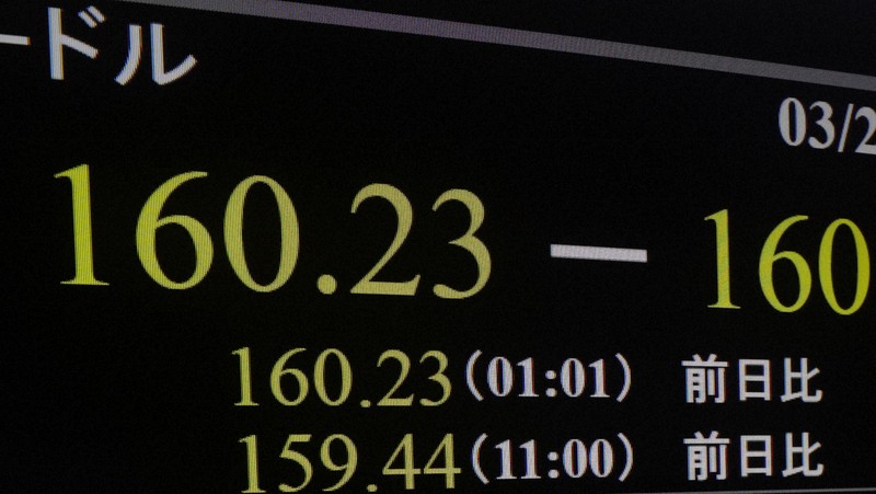 27日の外国為替市場で円相場は、一時1ドル=160円台に下落した。2024年7月以来、約1年8カ月ぶり。米国とイランの停戦交渉が難航しているとの見方が広がり、「有事のドル買い」が強まった。
