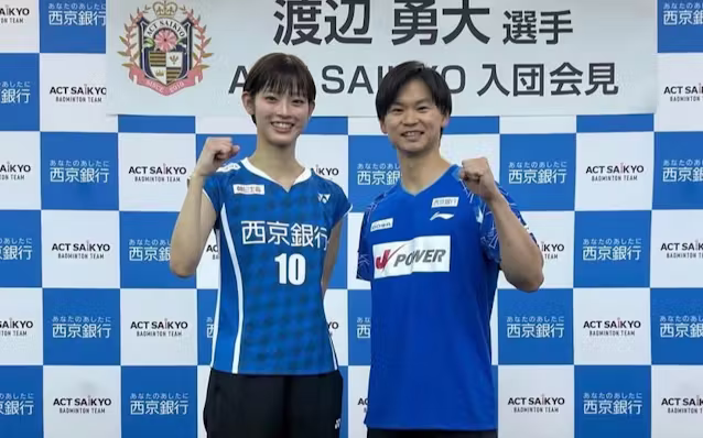 西京銀行(山口県周南市)は傘下のバドミントンの実業団チーム「ACT SAIKYO」に渡辺勇大選手が加入すると発表した。渡辺選手は混合ダブルスの五輪銅メダリストで現在はチーム所属の田口真彩選手とペアを組む。2028年のロサンゼルス五輪に向けて練習を充実させ、海外遠征などで支援を受ける。