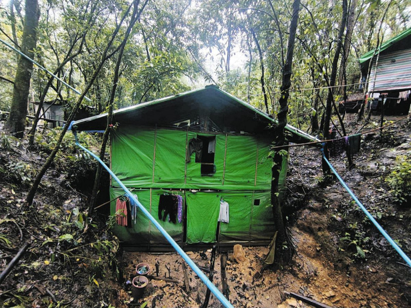 幼稚園児から高校生まで約680人が、避難民キャンプなどにいる親の元を離れ、約30人の教師らと寝起きを共にしながら勉強している。学校施設は国軍に見つからぬように、木々のはざまにビニールシートなどで簡単につくられている。 校長は女性のオンマーカイン(53)。シャン州内の公立高校で教師をしていたが、国軍が2021年2月、アウンサンスーチー率いる国民民主連盟(NLD)から政権を奪うと、軍政下での職務を拒む「市民不服従運動(CDM)」に加わった。高校のある町を離れ、ペコン郡区で避難民ら向けの学校を開いた。 ペコン郡区はカヤ州との州境にあり、同州を拠点とする民主派武装組織「カレンニー国民防衛隊(KNDF)」の勢力圏に当たる。 実はチェリー・ミェーは以前、山中ではなく同郡区内の避難民キャンプにあった。だが、昨年9月、国軍の戦闘機が避難民キャンプを空爆。学校に通う子どもを含む9人が死亡した。
