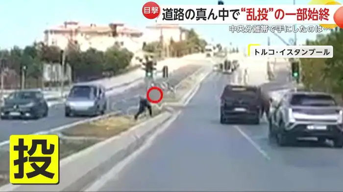 トルコ・イスタンブールで、運転手が石を投げつける“乱投”の瞬間がカメラに捉えられた。走行中にトラブルとなった2台の車の間で口論が発生。怒りをあらわにした片方の運転手が中央分離帯から石を拾い、後続車に投げつけた。運転手の怒り収まらず、その後も何度も石を投げ続け、現場は一時騒然となった。