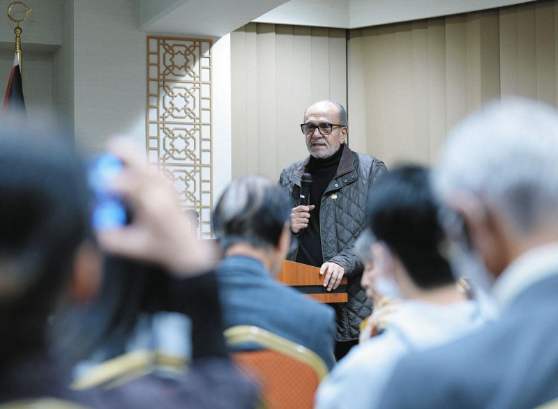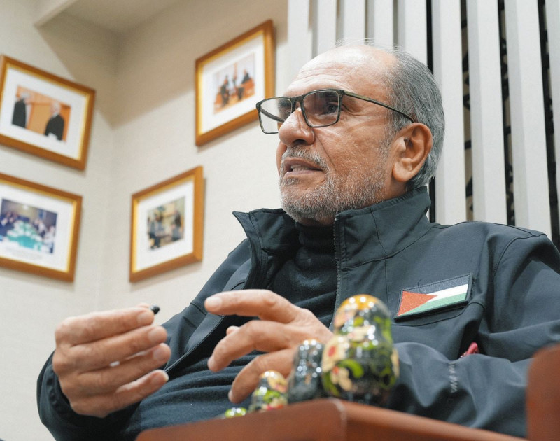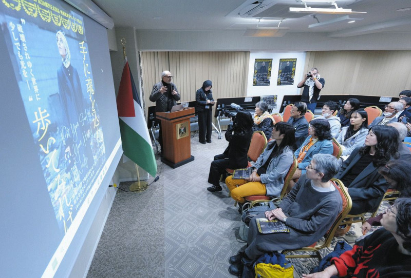 シアム大使は、23日に東京都港区のパレスチナ代表部で取材に応じた。この日、ガザのドキュメンタリー映画「手に魂を込め、歩いてみれば」(12月公開)の試写会もあった。