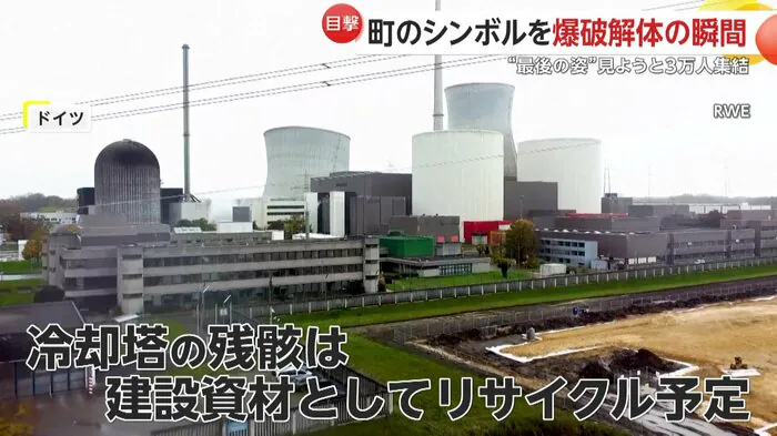 解体されたのは、原子力発電所の冷却塔だった。ドイツでは、福島第一原発事故を受けて原発の廃止を段階的に進めている。