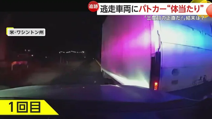 しかし、トラックは走行を続ける。パトカーはスピードを上げ、2度目の衝突を試みた。