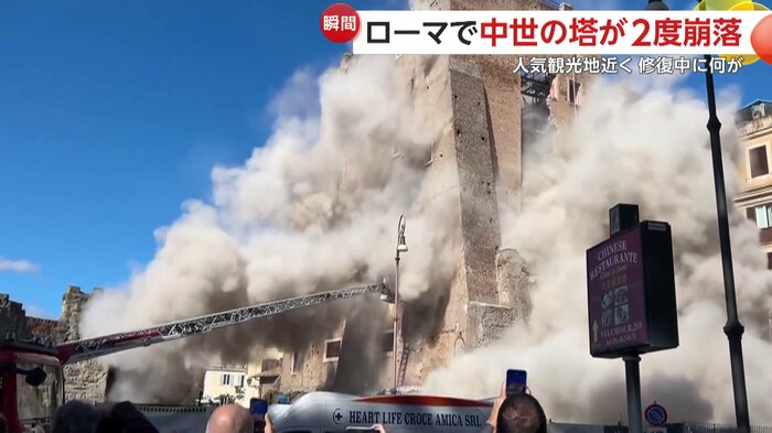 イタリアの首都・ローマで3日に起きた、崩落事故の瞬間を捉えた映像。