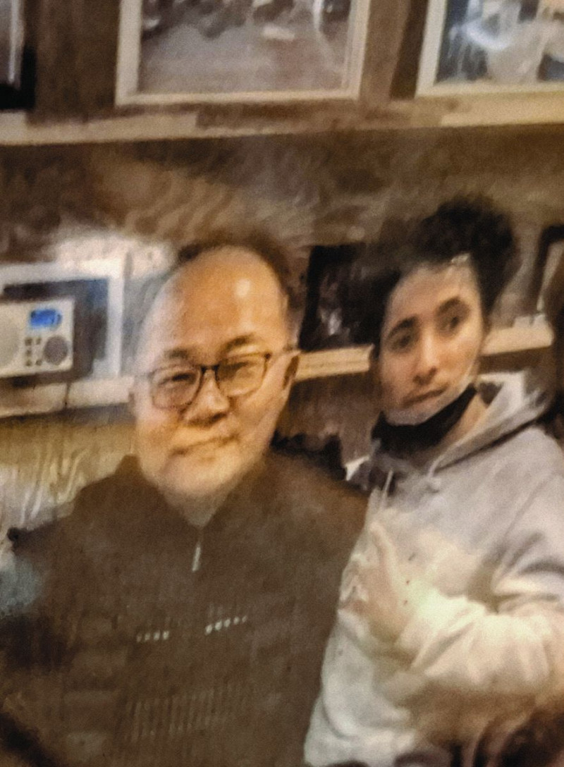 YDケバブハウスの壁にかかる洪疇旻(左)とアブドラの写真=韓国・水原で(斎藤雄介撮影)