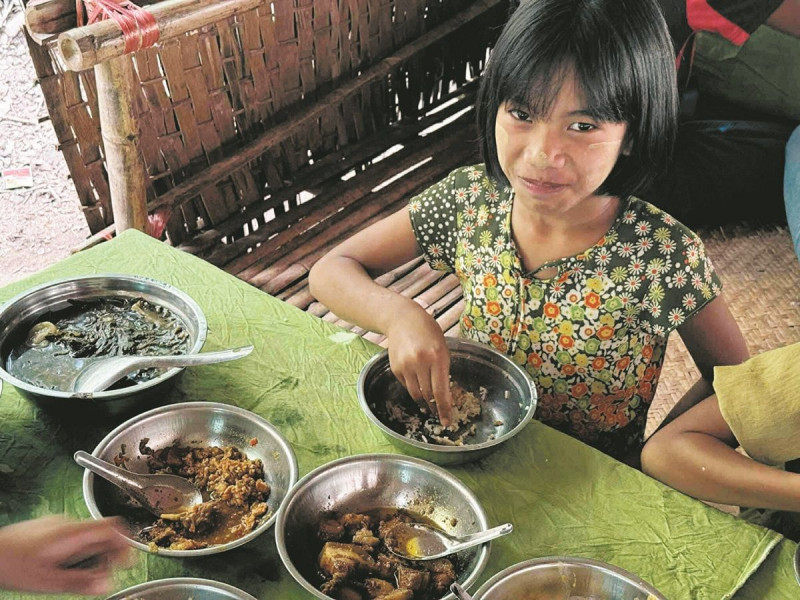 「とてもありがたい。純粋な支援だと感じる」。国軍の空爆が絶えないミャンマー中部マグウェ地域でIDPキャンプを管理する僧侶は喜びを表した。在日ミャンマー人と日本人有志の「ミャンマーの平和を創る会」が、読者の寄付をキャンプに送金。キャンプでは13日、600人近いIDPにミャンマー料理がふるまわれた。寄付は防空壕(ごう)の修復にも使われる。僧侶は言う。「日本の人が気にかけてくれていると感じるだけでも、避難民は前向きになれる」◆移民学校で、ジャングルにある病院で