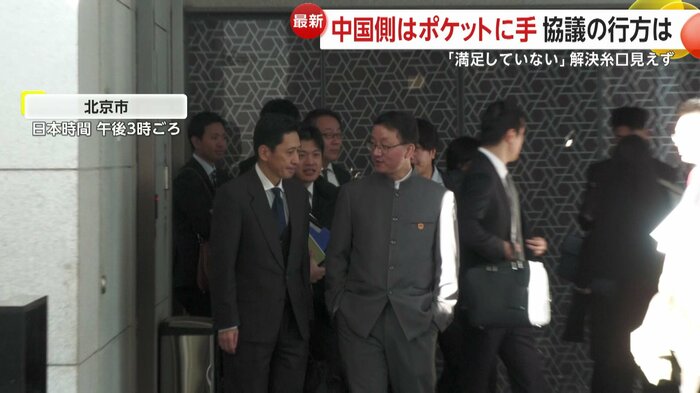 そして日本時間午後3時ごろ、協議を終え出てきた金井局長が険しい表情を浮かべていたのに対し、中国の劉局長はポケットに手を突っ込んだままだった。