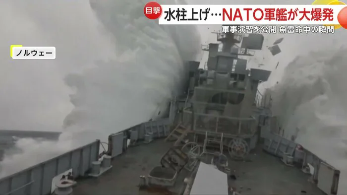 映像と共に、NATOは「潜水艦から魚雷を発射し、沈める事が目的だ」とSNSに投稿している。