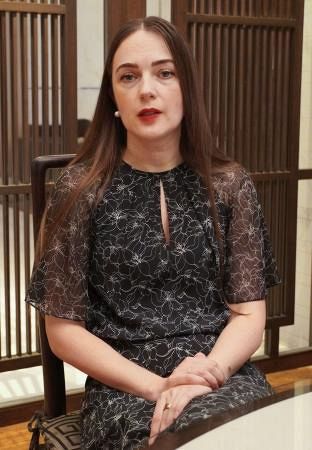 インタビューに答えるウクライナの人権団体CCLのオレクサンドラ・マトイチュク氏=バンコク(共同)