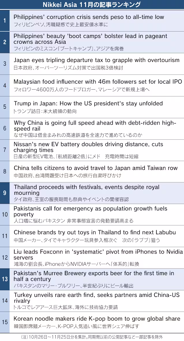 ■この記事の全文(英文)はNikkei Asiaでお読みいただけます Thailand proceeds with festivals, events despite royal mourning@フィリピン 汚職横行でペソ安進行