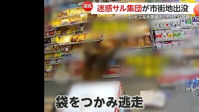 市内にあるコンビニエンスストアでは、3頭のサルが入り口から店内に侵入。