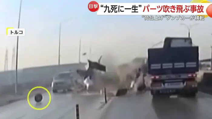 トルコで、走行中の車が対向車線に飛び出しトラックに突っ込む瞬間がカメラに捉えられた。車は大破したが、命に別条はなかったという。別の場所では荷台を上げたままのダンプカーが柱に衝突し、横転する事故も発生している。