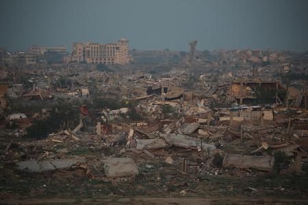 イスラエル軍の攻撃で破壊されたガザ北部ガザ市の町並み=4日(ゲッティ=共同)