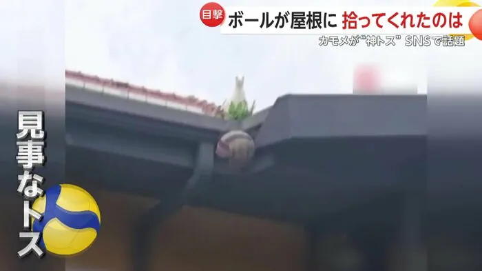 屋根の上から生徒たちへ見事な“トス”を送ったカモメの行動は、SNSでも大きな反響を呼んだという。