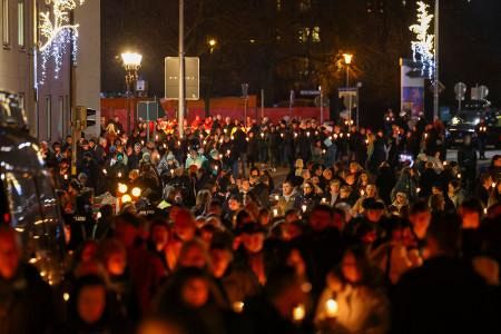 ドイツ・マクデブルクのクリスマスマーケットで起きた車突入事件の追悼行事でろうそくを持って歩く人々=20日(ロイター=共同)