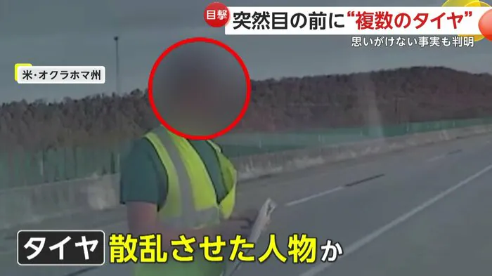 アメリカ・オクラホマ州の道路上で、複数のタイヤが飛び跳ねながら転がってくる様子がカメラに捉えられた。持ち主によれば、詰んでいたタイヤが固定不足で、落下してしまったという。その後、持ち主の男性は不法移民であったことが判明し拘束された。