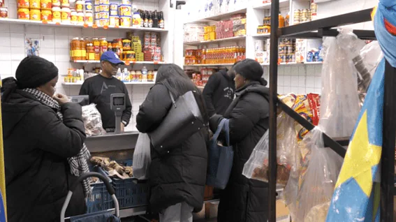 コンゴの食材をメインで扱う店舗では、キャッサバ芋や魚の燻製、アフリカでよく食べられるという野菜のペーストが売られ、ところ狭しと現地料理に欠かせない食材が並ぶ。