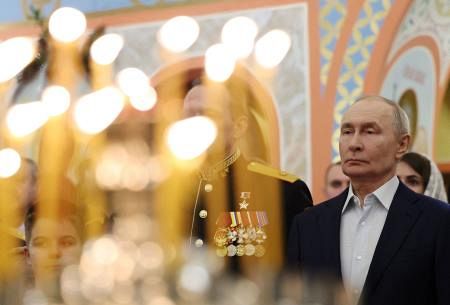 7日、モスクワ郊外の教会を訪れたプーチン大統領(ロイター=共同)