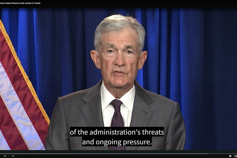 捜査について、ビデオ声明で「政権による脅迫」と語るパウエル議長(連邦準備制度理事会ウェブサイトより)