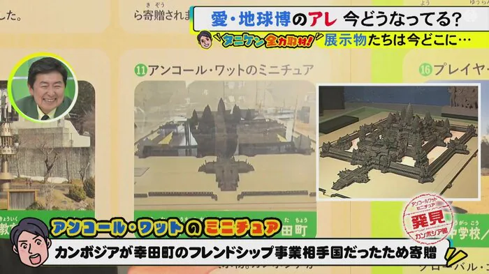さらに、ギリシャ館のデメテル女神のレリーフは稲沢市立中央図書館、カンボジア館のアンコール・ワットのミニチュアは、幸田町中央公民館へ、それぞれ移設されていることが確認できました。