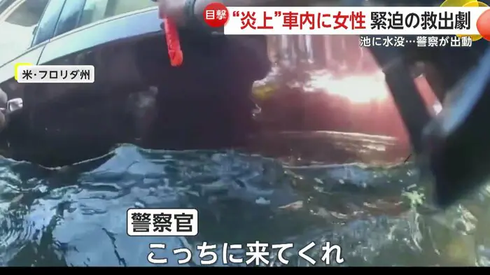一方、フロリダ州では池に転落した車から、警察官が迅速にドライバーを救助する様子も撮影された。