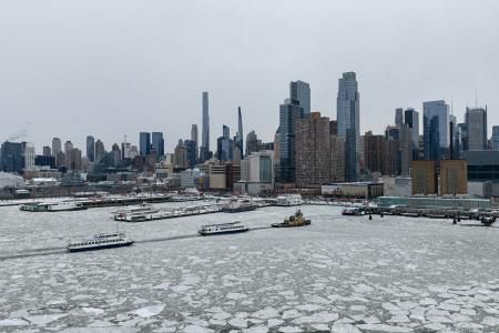 一部が凍った米ニューヨークのハドソン川=27日(ゲッティ=共同)