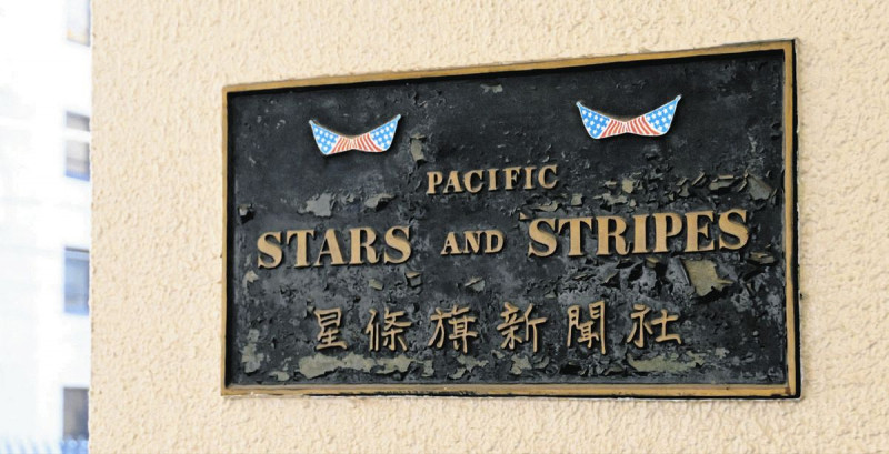 米軍施設「赤坂プレスセンター」にある星条旗新聞社のネームプレート